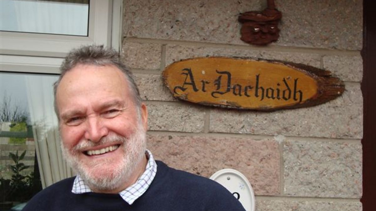 Dòmhnall Greumach a' toirt Catrìona Mhoireach air chuairt timcheall a' ghàrraidh aige ann an Cults. Donald Graham tells Catriona Murray why he loves his garden in Cults.