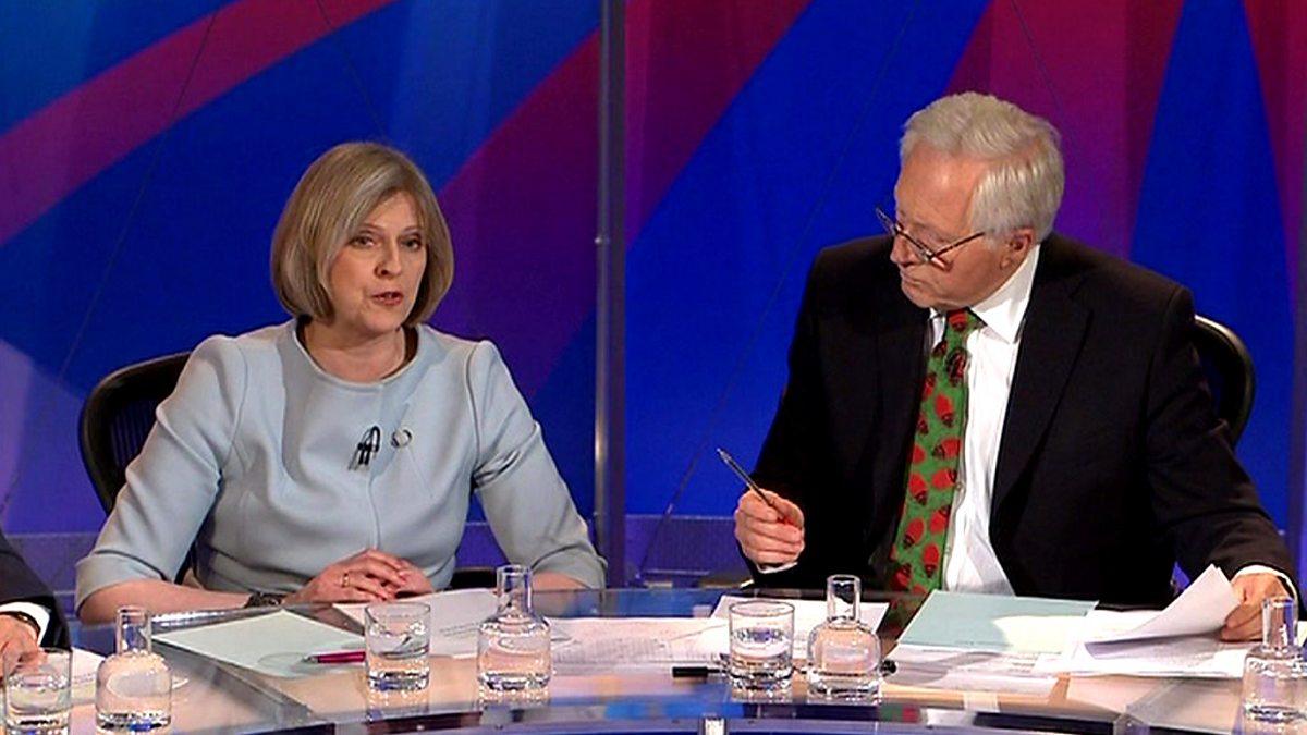 The panel includes the new Home Secretary Theresa May, Labour's Caroline Flint and Ming Campbell for the Liberal Democrats.