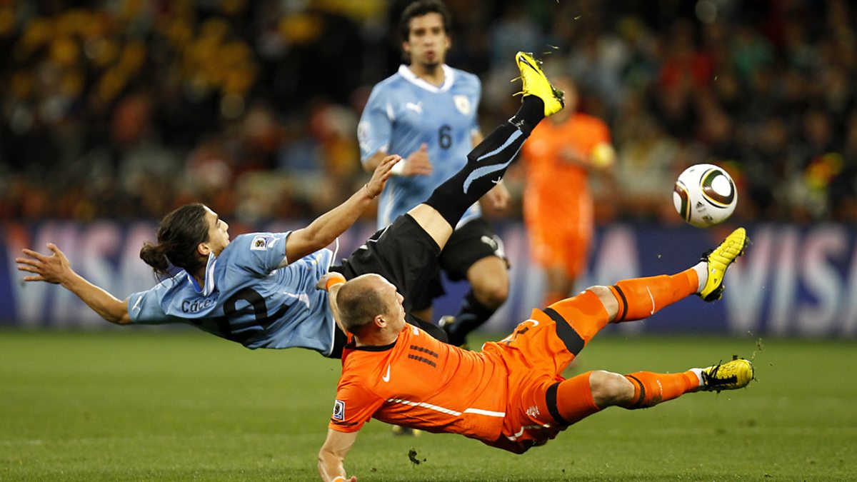 Coverage of the first World Cup semi-final between Uruguay and the Netherlands at the Green Point Stadium in Cape Town. The Netherlands are looking to make their first final since 1978, while Uruguay haven't been in the final since they last won the trophy back in 1950.