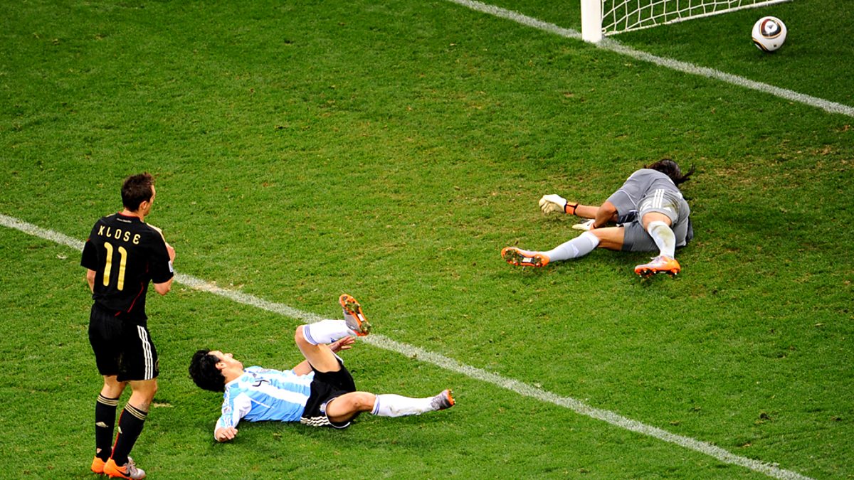 Coverage of the World Cup quarter-final between Argentina and Germany.