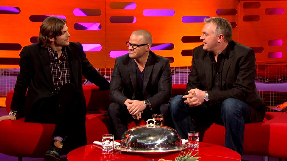 Anarchic talk show. Graham is joined by Hollywood star Ashton Kutcher, gastro-scientist/chef Heston Blumenthal, and comedian Greg Davies, with music from Hurts.