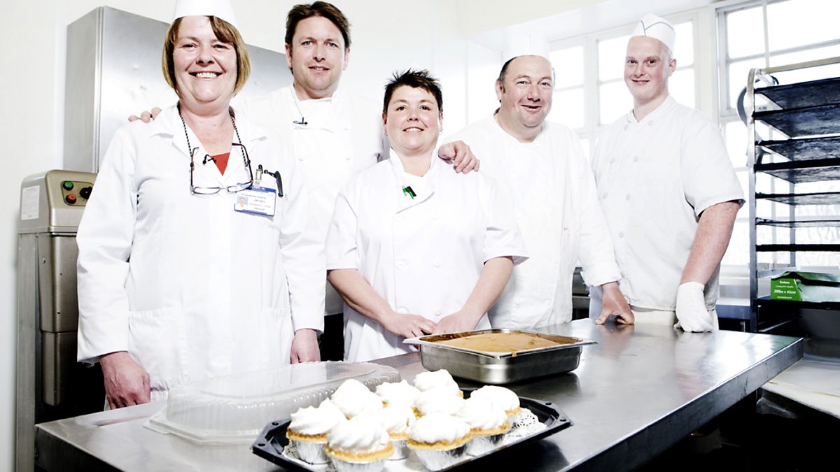 In this first episode he meets catering manager Pat Bell and her loyal team of chefs, and sees for himself where the problems lie. He discovers excessive use of packaged, processed and frozen food, shocking levels of waste, and a complicated and inefficient menu that's not been changed for nine years. But in order to implement any kind of change, he first needs to win the hearts and minds of a reluctant team.
