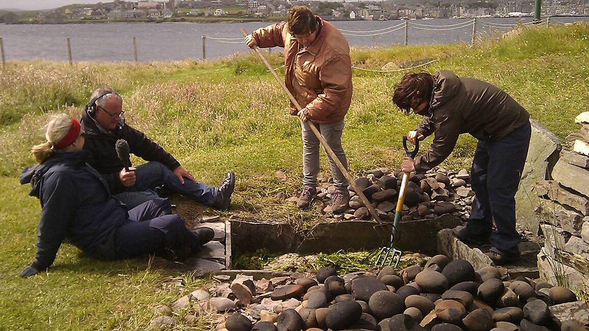 Fire, steam, red hot stones, and a subtle hint of wee. Mark Stephen gets into hands-on history as he joins the Bressay History Group to find out how Bronze Age people dyed fleeces in an ancient set-up called a burnt mound. It's not without its dangers of exploding stones, scalding water, stinging nettles and the 'ewwwww!' factor of just what you steep the wool in. Mark also explores a remarkable shaggy dog story of the Whalsay fishermen blown out to sea in an open fishing boat - did they really get to Philadelphia? Find out in Past Lives.