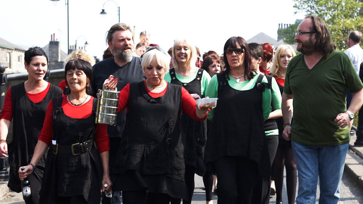 The Hairy Bikers try to start a new Meals on Wheels service in Slaithwaite, West Yorkshire. They are prepared to go all the way, even if it means stripping naked to raise funds.