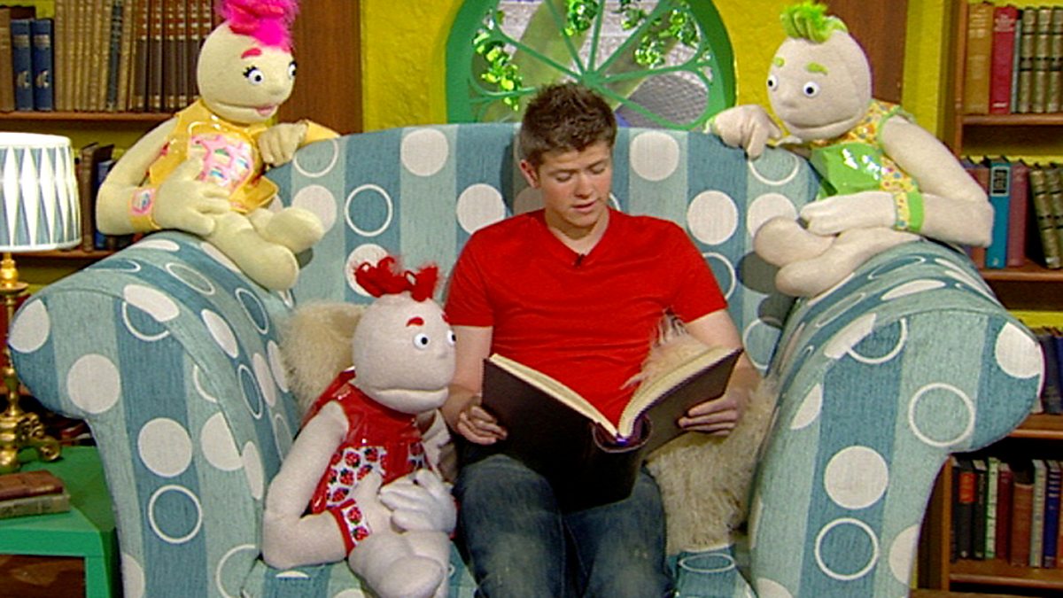 Tha Seoc a leughadh stòiridh dha charaidean san taigh aran chridhe. Jack reads a story to his puppet friends in the Gingerbread House.