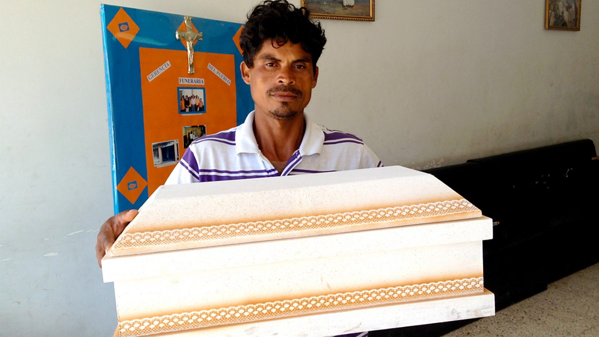 Honduras has the highest murder rate in the world. The People's Funeral Service deals daily with the fall-out from these extreme levels of violence. Set up by the Mayor of Tegucigalpa, the capital city, it distributes coffins, maintains two funeral homes, and even offers a mobile service where employees take everything necessary for a wake - including bread and coffee - to someone's house or local church. All of these services are totally free for poor people in the city.