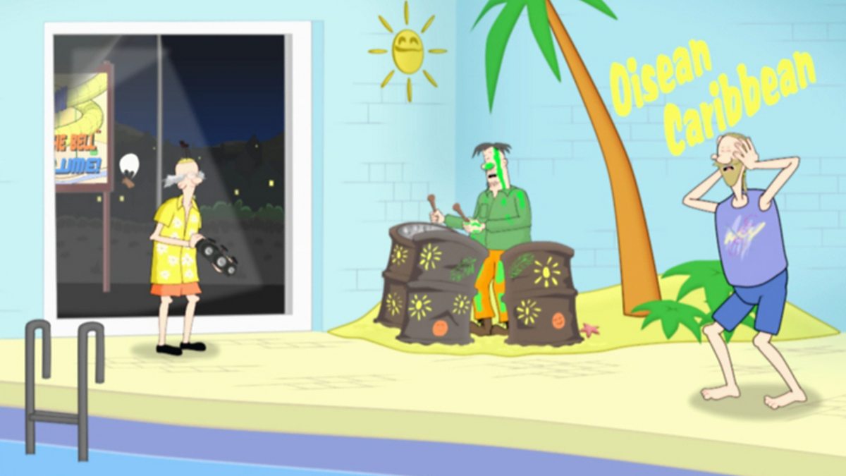 The Fraochy Bay family building dynasty The James Brothers have been commissioned to bring sporting fun to the town by building new flumes at the swimming pool. Not surprisingly, the skills of Peter the inventor are in demand to try and resolve the ensuing difficulties.