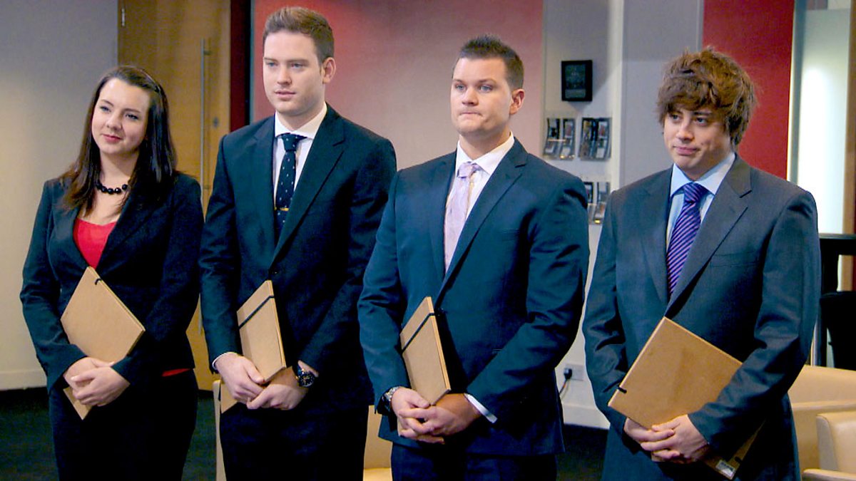 Business-based competition. Lord Sugar asks the candidates to pitch their business concepts to him, and they face a gruelling series of interviews.