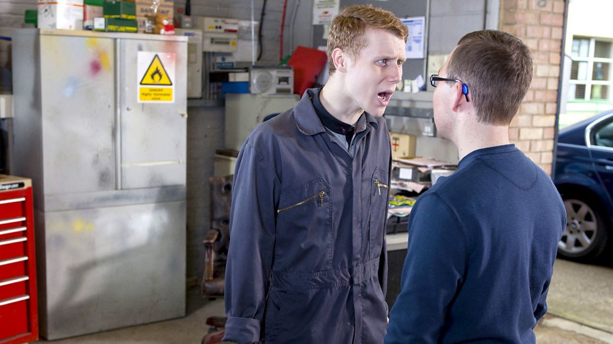 While Ben sleeps, Jay checks the photo frame stashed in his rucksack. At the Arches, Jay confronts Ben; he knows about the frame. Jay’s determined to end things, takes the frame and strides off. He stops when a car horn blares – it’s Ben. Ben peals towards Jay, braking at the last minute. Ben pleads he’ll turn himself in, but flees when Jay relinquishes the frame. Jay trashes the burger van, pushing Lola. Ben removes the photo, stowing the frame in a bin bag. He finds Amy clutching the photo. Ben tells Shirley he and Jay have rowed, coaxes the photo from Amy and rips it up. Ben threatens Jay could be incriminated if he doesn’t support him. The boys discover the bin bag containing the frame is missing.