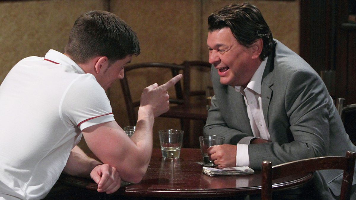 Joey volunteers to keep Bobby occupied. Lucy lies to Tanya that Ian’s wired her money for the debt collector. Joey refuses Derek’s offer of lunch. Bobby hides his things when a man calls threatening to take their belongings. Joey vows to get Lucy £500 and challenges Derek to a drinking competition. Derek reminisces about lighting fireworks in a car park on Joey’s 7th birthday. After drinking all night, a drunk Derek staggers into Patrick’s table. Jean reveals Joey’s been drinking water. A sober Joey remembers his 7th birthday too – Derek threatened to push his mother off the car park roof. Joey presents Lucy with £500 , Lucy invites him to stay. Derek crashes in, warning Joey no-one takes him for a ride and gets away with it.