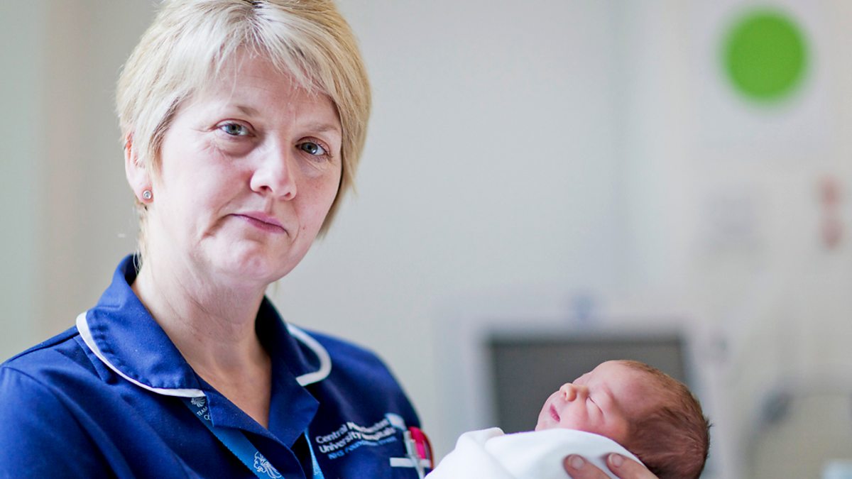 Following the work of the midwives at Saint Mary's Hospital in Manchester. Midwife Gill helps deliver the baby of a woman who has been waiting for a bed for more than a day.
