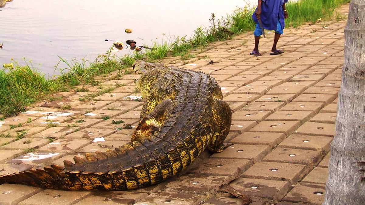 The man who looked after the sacred crocodiles in the Ivory Coast is not doing the job any longer. John James tells us about his very last day at work.