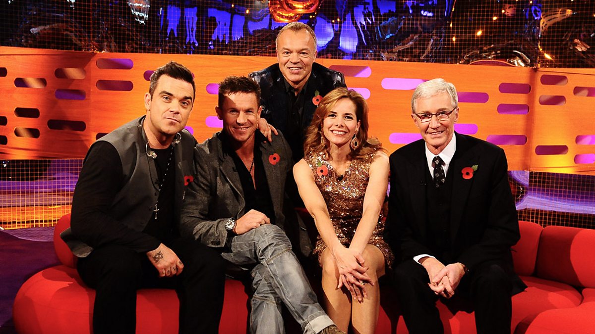 Graham is joined by Robbie Williams, chatting and performing his new single; comedian Paul O'Grady; Strictly judge Darcey Bussell and daredevil skydiver Felix Baumgartner.