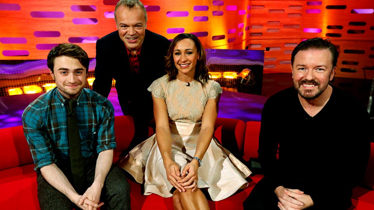 Together on the sofa are ex-Harry Potter star Daniel Radcliffe, Olympic golden girl Jessica Ennis, comedy legend Ricky Gervais and singer Bruno Mars.