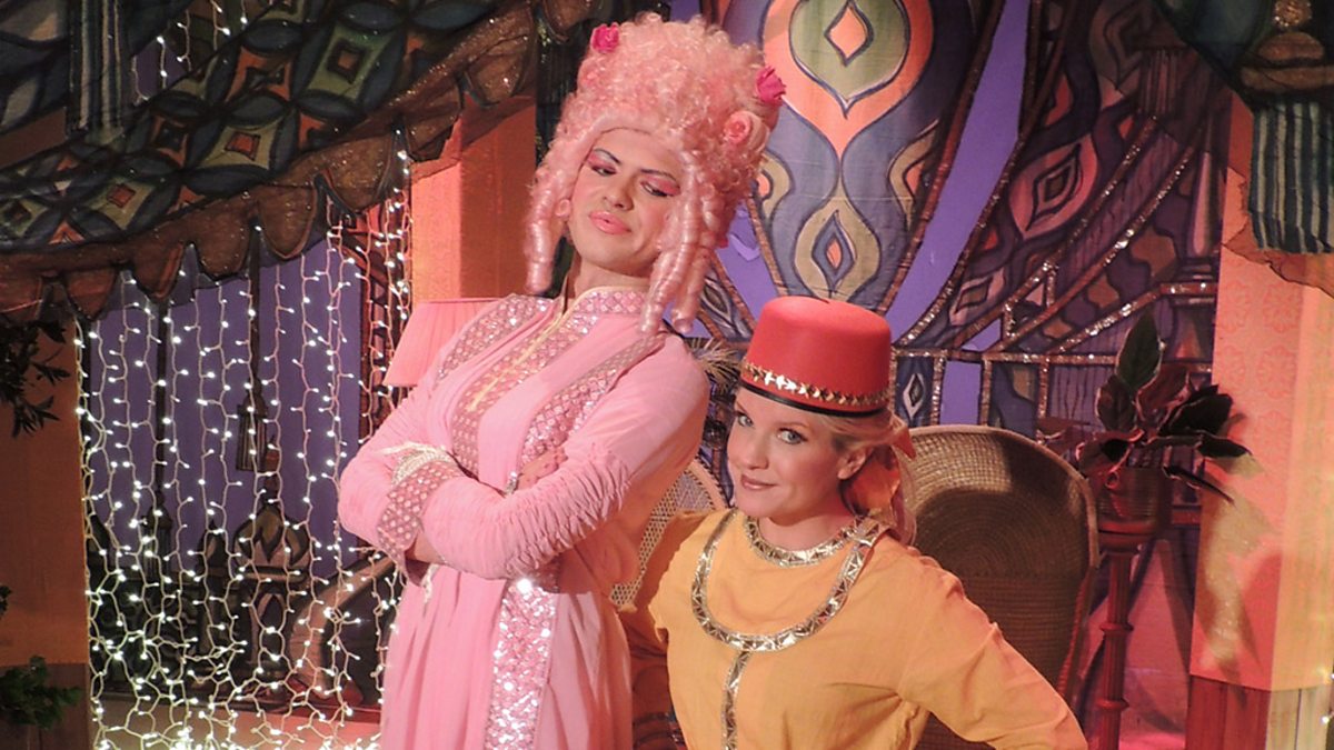 Tha na preseantairean air bhioran mun Nollaig 's iad a faighinn deiseil airson am panto. The presenters get excited about Xmas as they prepare for the De a-Nis? panto.