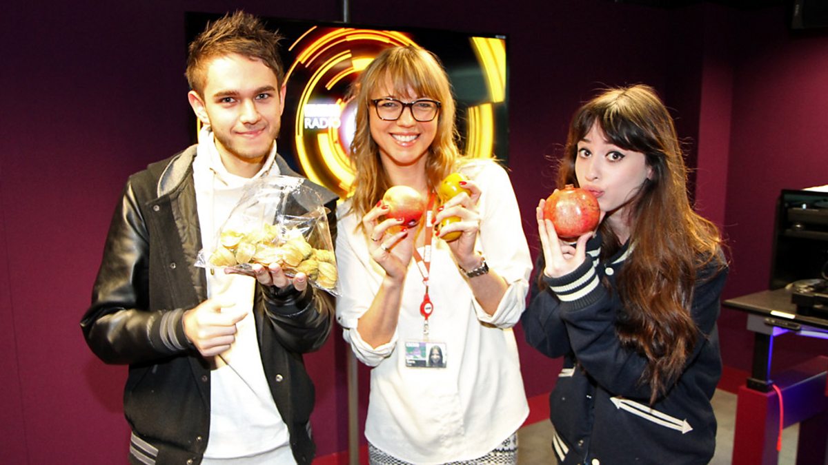 Sara meets dance producer Zedd and singer Foxes, the makers of her Big Thing this week. They bring in some fruit (standard), and Sara subjects them to a gruelling sound-effects quiz.