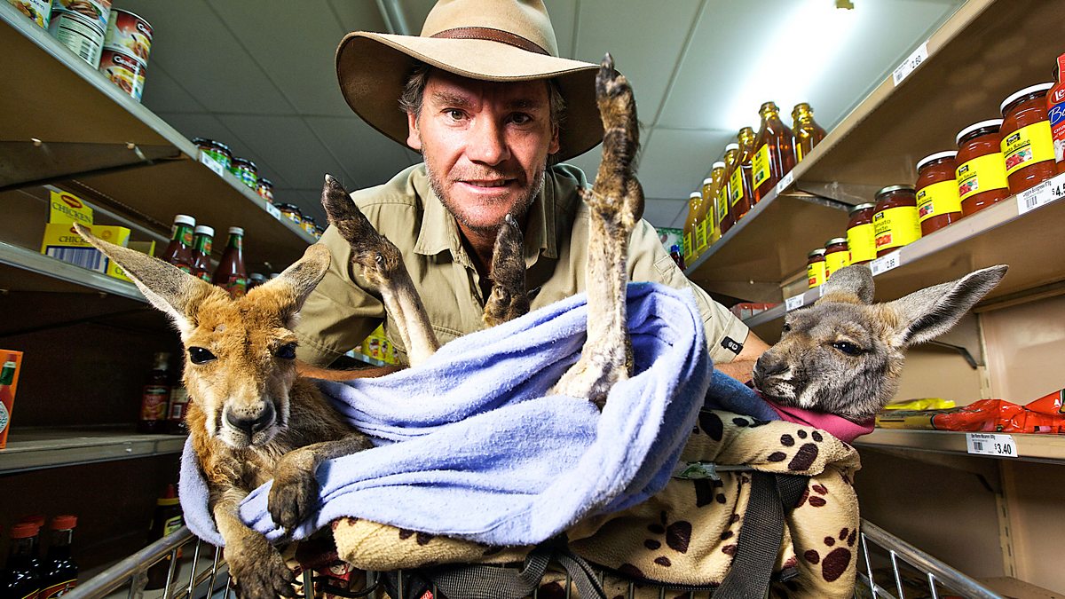 Wildlife documentary. An Australian living in the desert outback rescues orphaned baby kangaroos and raises them in his one-bedroom tin shack.