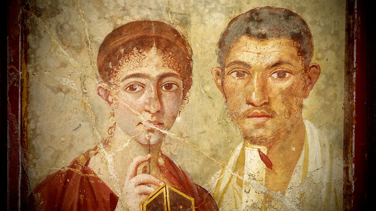 Wall painting of the baker Terentius Neo and his wife. From the House of Terentius Neo, Pompeii. AD 50 to 79. Copyright Soprintendenza Speciale per i Beni Archeologici di Napoli e Pompei / Trustees of the British Museum