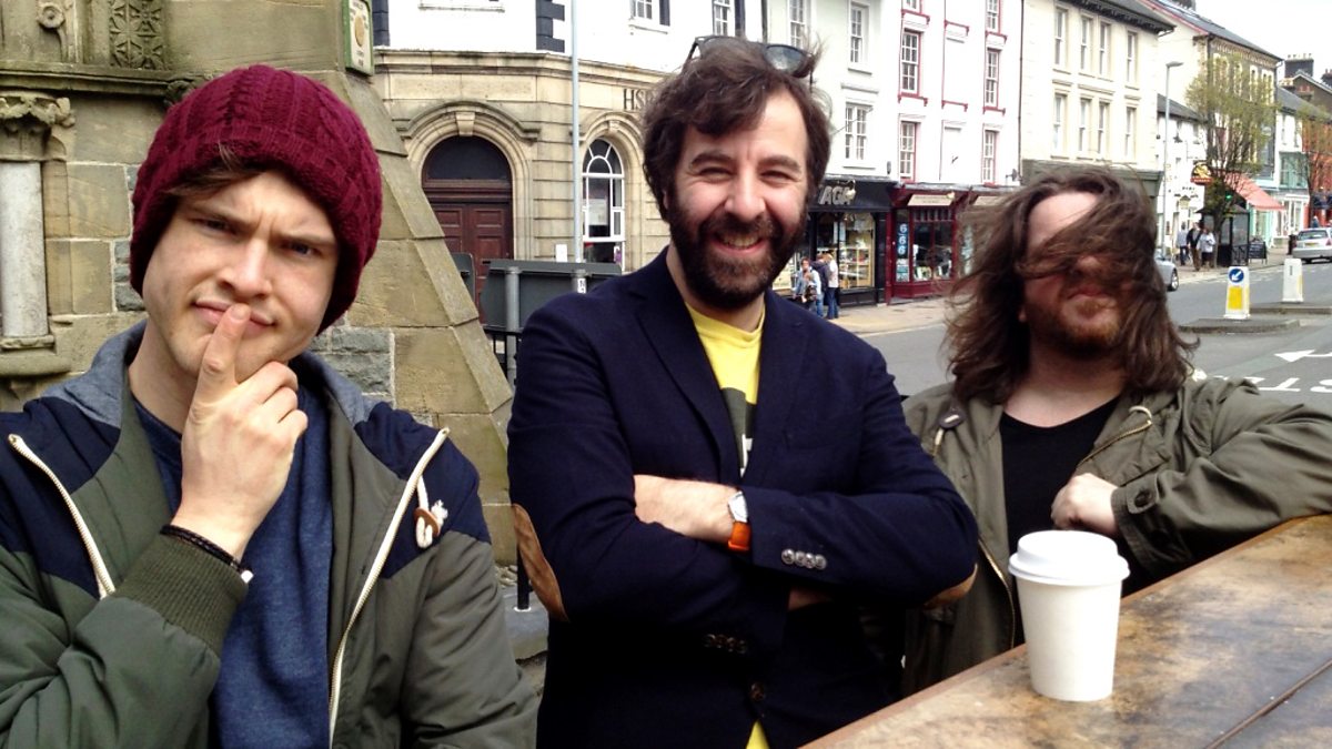 Ray and Ed join David O'Doherty on a piano underneath Machynlleth Clock Tower.