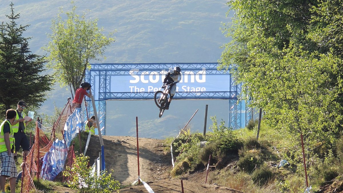 Iain Moireasdan agus an sgioba aig Cuach Cruinne Baidhsagal nam Monaidhean sa Ghearastan.Iain Morrison and the team attend the Mountain Bike World Cup in Fort William.Twitter: @bbcspors.