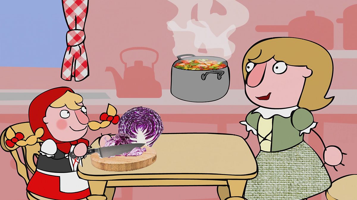 Sarah Jane Honeywell presents programme 1 of Little Red Riding Hood. We learn the song 'I love red' and there's also the first part of the story and a music activity.
