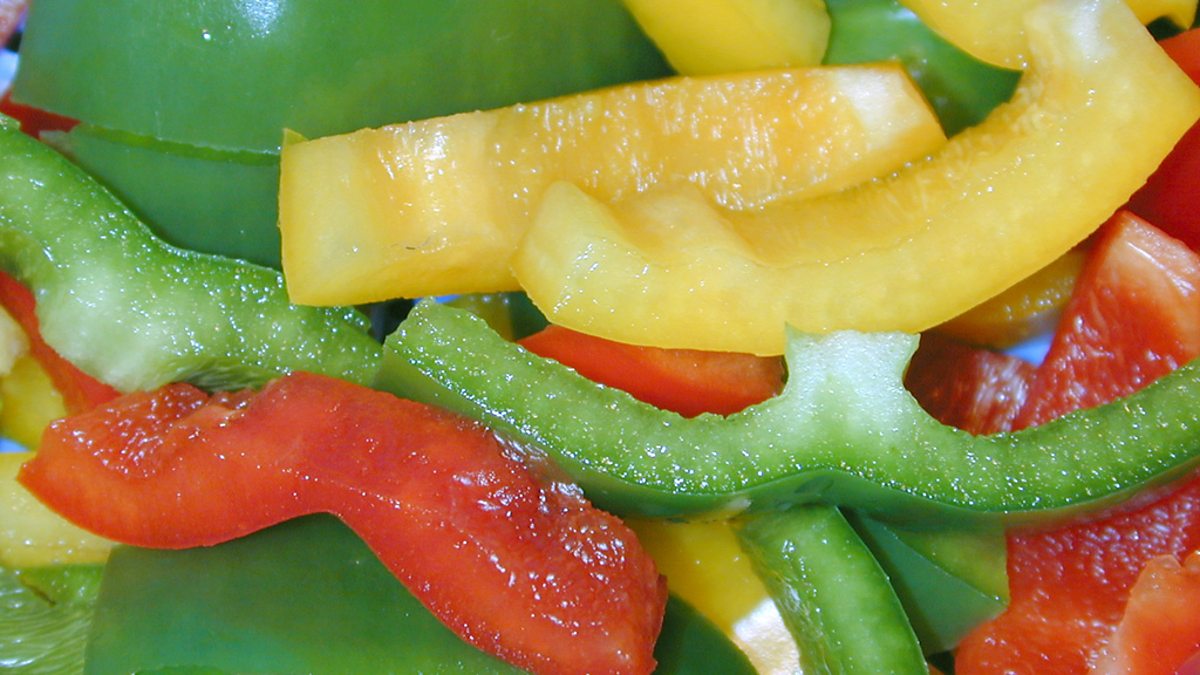 Pòl MacCaluim ag innse dè bhios a' dol dhan stir-fry aige. Le Angela NicFhionghuin. Paul MacCallum makes his own stir-fry for Angela MacKinnon.
