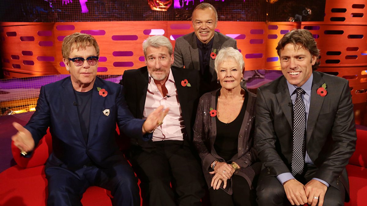 On Graham's sofa: pop legend Sir Elton John, chatting and performing Voyeur; actress Dame Judi Dench, starring in Philomena; journalist and presenter Jeremy Paxman; and comedian John Bishop.
