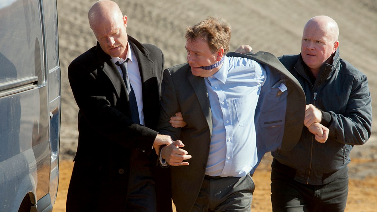 Max and Phil bundle Ian out of the back of the van at a wasteland. As they threaten him with a tyre irons, Ian realises no one is around to help. Meanwhile Denise, Peter and Lucy find Ian’s packed holdall and wonder where he might be. Ian begs for his life and appeals to Max that he only lied to protect his family. Phil tells Ian he is only sparing him because of David - it was his idea to keep Ian from attending court – instead, he and Max have a job for him. Later, Ian appears in the Vic and races out when Carl spots him. Carl chases him to a scrap yard to find he is surrounded by Max and Phil, the whole thing being a set up. Phil punches Carl, and with Max they push him into the back of the van and drive back to the wasteland. Ian returns home to a relieved Denise, Lucy & Peter, but just tells them he went for a walk to clear his head and bottled going to court. At the wasteland Phil and a distracted Max start digging a grave to bury Carl in. As Max goes to hit Carl with a tyre iron, Carl goads him, and tests if he can actually murder him. Max cannot go through with it and walks off, leaving Phil to confront Carl about how he set up the car crash. As Phil is about to hit him with a spade, Carl teases that if Phil kills him, he will never find out where Shirley is.