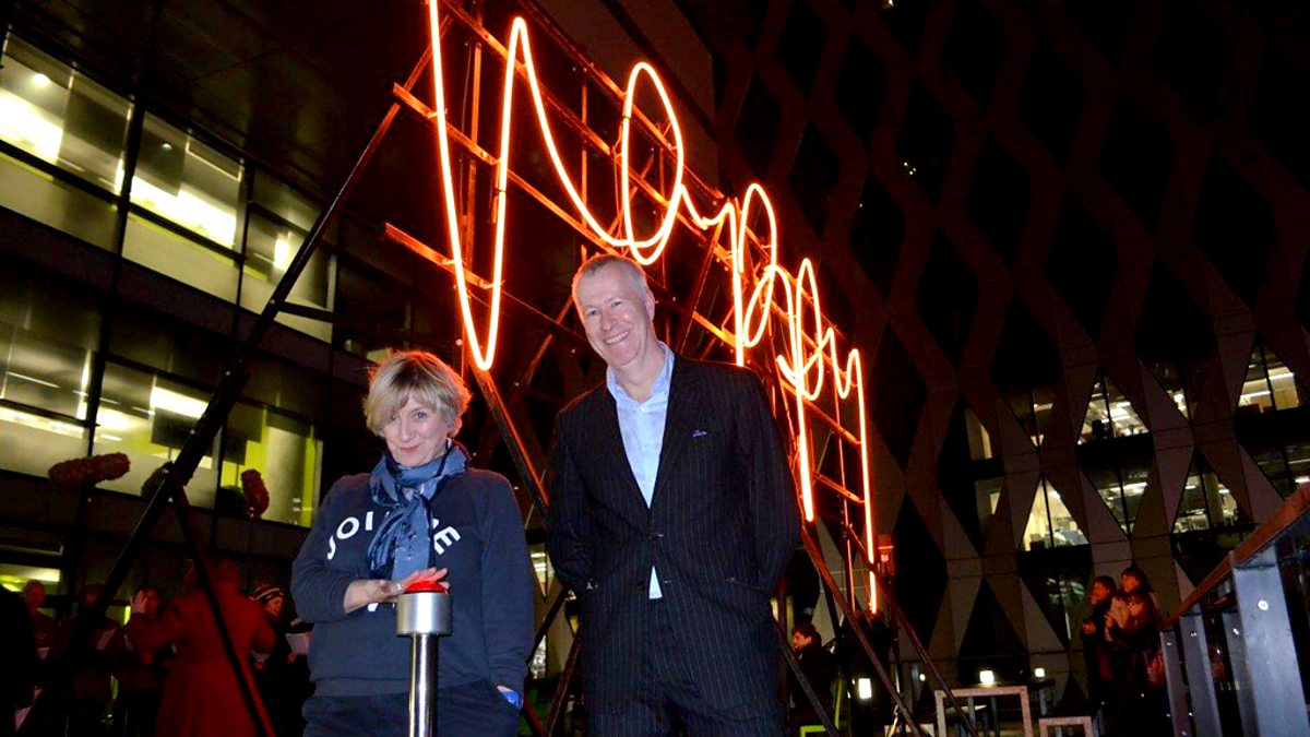 John Wilson is joined by writer and comedian Victoria Wood for a special edition of the live daily arts programme, featuring the switch-on of this year's Front Row neon artwork.