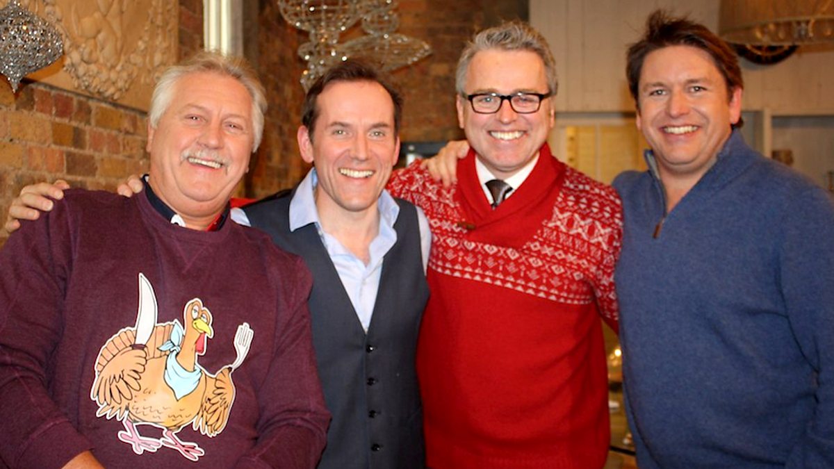 James Martin is joined in the Christmas Kitchen by chefs Lawrence Keogh and Brian Turner. Michel Roux Jr invites cameras into his home as he demonstrates how to cook a game terrine, and James cooks up a warming beef bourgignon. Plus a celebrity guest and treats from the BBC's festive food archives.
