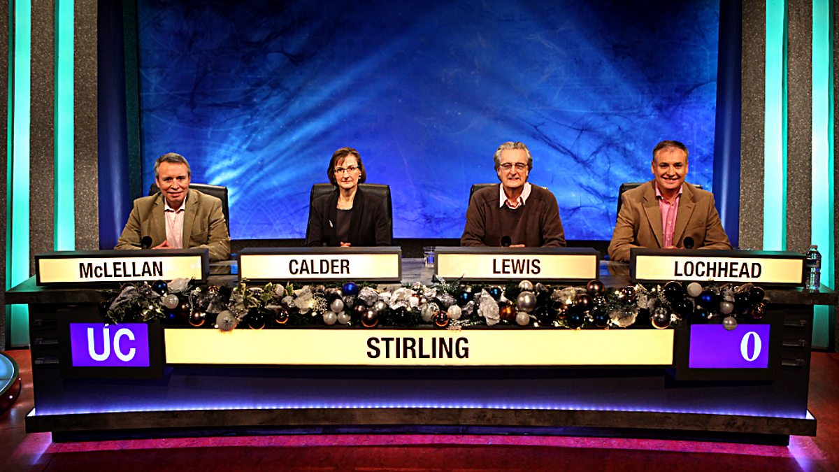 In another first round match in the series for grown-ups, broadcaster Suzy Klein and writer Rowan Pelling represent St Hugh's, Oxford, as they play the University of Stirling, whose team includes Radio 4's Money Box presenter Paul Lewis and MSP Richard Lochhead.
