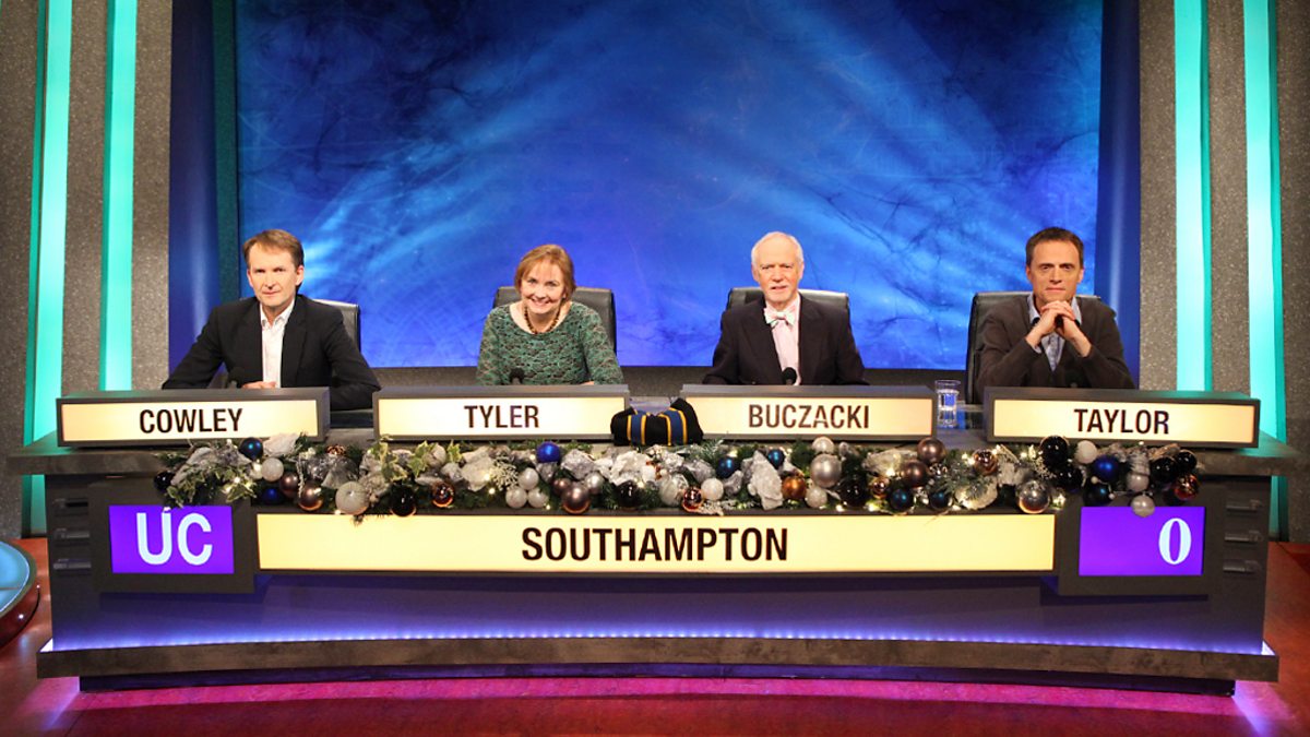 Jeremy Paxman asks the questions as teams of distinguished university graduates compete in a festive version of the quiz.