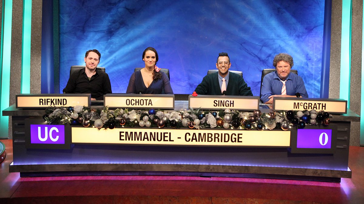 Jeremy Paxman asks the questions as teams of distinguished university graduates compete in a festive version of the quiz.