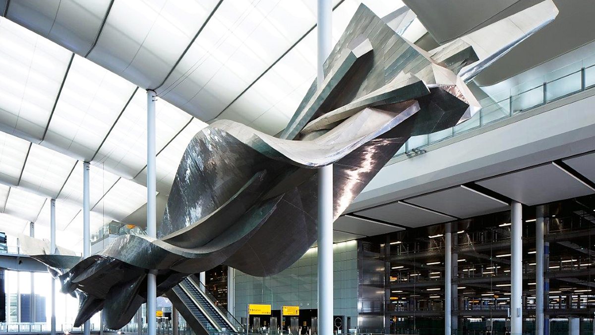 Sculptor Richard Wilson unveils his vast 77-tonne new silver sculpture, Slipstream, in Heathrow's new Terminal 2.Mike Bartlett