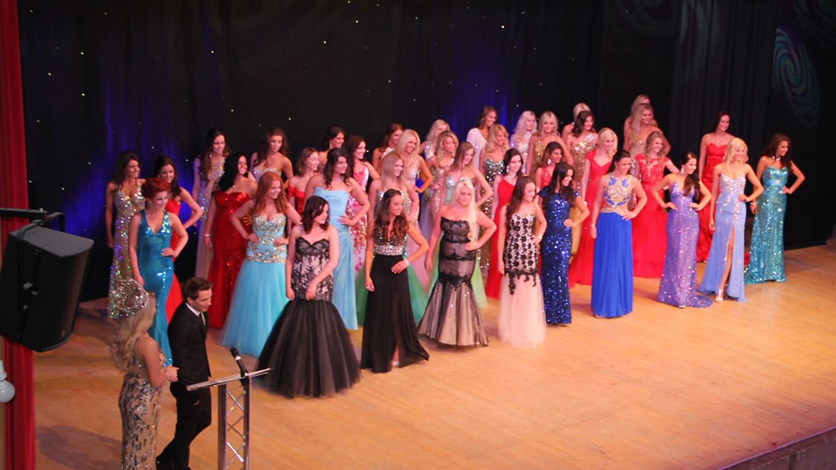Stori Hanna Gwyn a Lowri Byrne ym mhasiant prydferthwch Miss Cymru 2014. Hanna Gwyn and Lowri Byrne take part in the Miss Wales 2014 beauty pageant.