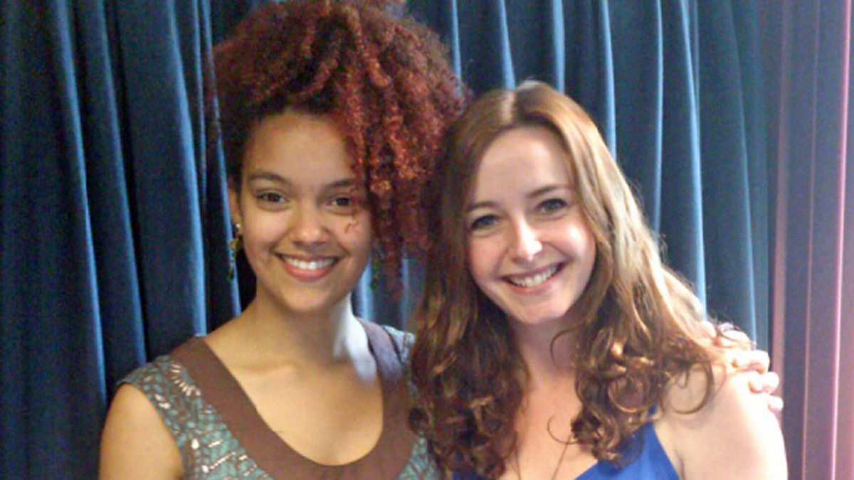 Lisa Gwilym sy'n cael cwmni Kizzy Crawford, un o artistiaid prosiect "Gorwelion". Lisa Gwilym chats with Kizzy Crawford, one of the BBC Cymru Horizons artists.