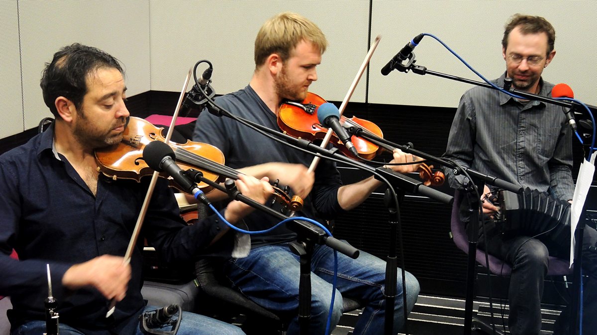 Bellowhead fiddle player Sam Sweeney and the storyteller Hugh Lupton perform pieces from their project 'Made In The Great War' which was inspired by the remarkable story of Sam purchasing a fiddle that turned out to have been made by a music hall performer who died at the Battle of Messines.