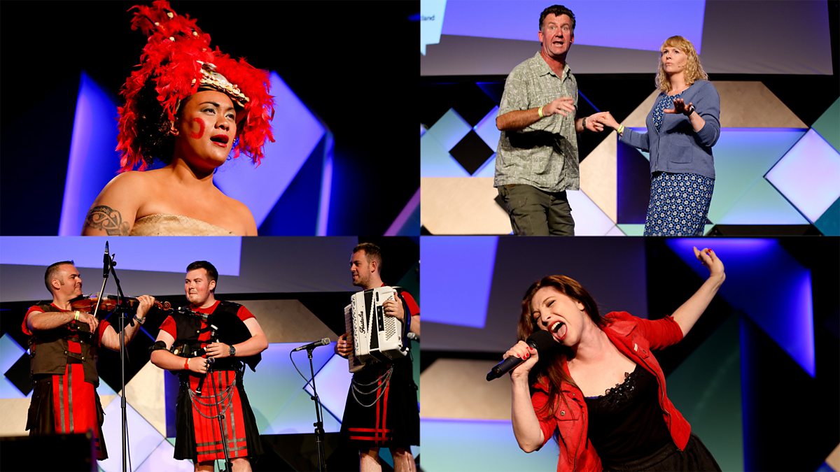 Janice Forsyth presents her live Edinburgh Show from the BBC's Pop Up Village at Potterrow in her big blue tent with a live audience and guests including singer and mimic Jess Robinson; new musical from the South Pacific, The Factory; theatrical musical event This is Ceilidh; performance from Return to the Voice; Audience Choice award-winning Auckland drama On the Upside Down of the World; and Irish actors and dancers Steve Blount and Janet Moran from Edinburgh Fringe Festival show Swing.