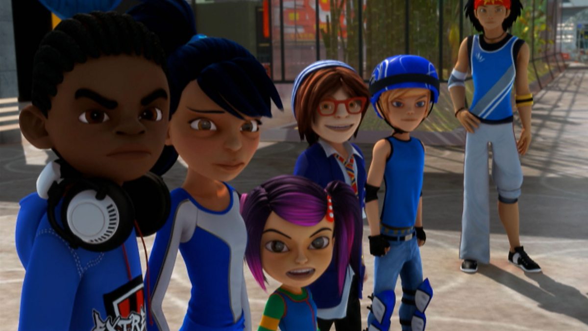 Children's animated series. The Del Toros have challenged the team to play their entire match on blades, but Ines doesn't know how to rollerblade.