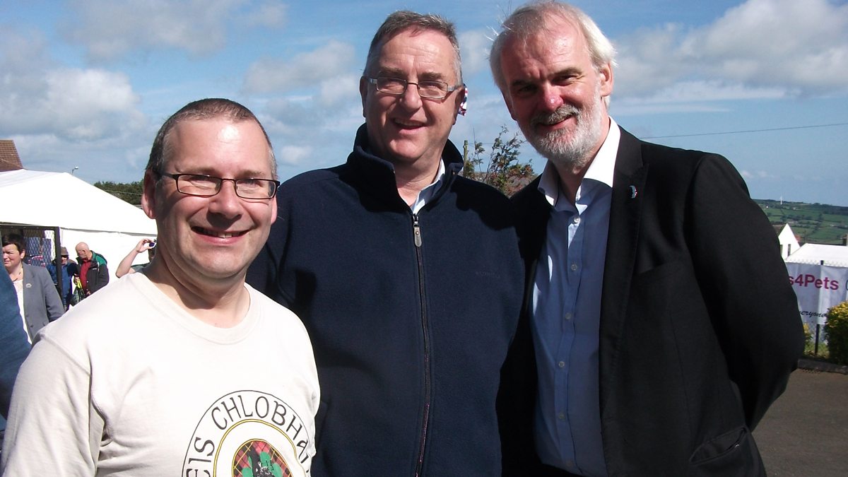 Liam has a crack with the folk determined to keep the hundreds of visitors to the Gathering well refreshed – those hard-working tea ladies; and as the sun shines down on David Hume, the Director of the day’s events, he finds himself looking up at this year’s Honorary Chairman, Tim McGarry, the long fellow who’s never short of a quip.