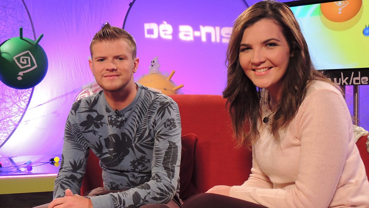 Megan and Derek enjoy Halloween in their new home. From scary stories to ghosts and guising, there is a lot of spooky fun in the studio. Iona from Glasgow details her favourite pastimes and pupils from Loch Carron Primary School strive to succeed in the new improved space-hopper challenge.
