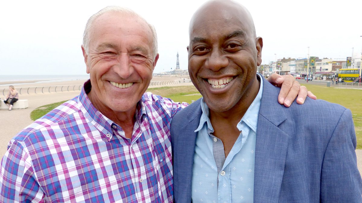 Famous faces recreate their childhood holidays. Len Goodman takes celebrity chef Ainsley Harriott back to Blackpool to reminisce about his seaside holiday from 1974.