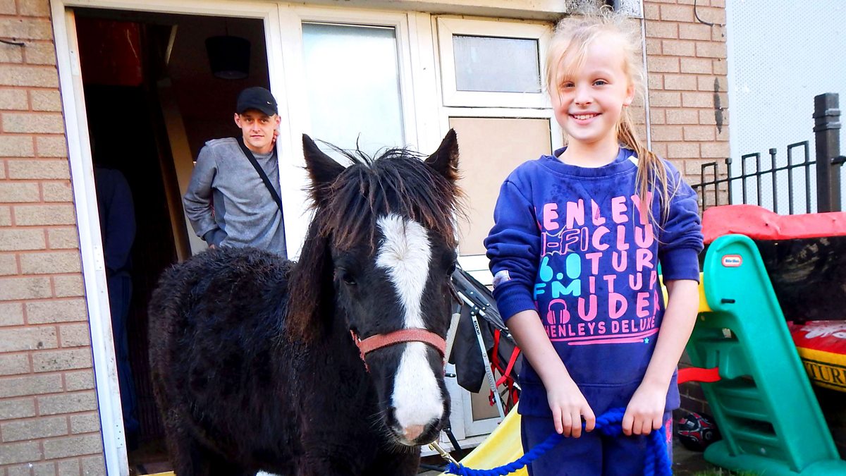 And then there's nine year old Holly Leigh who has long dreamed of owning a horse. That dream has just come true and Billy is now in the garden of her small council home.