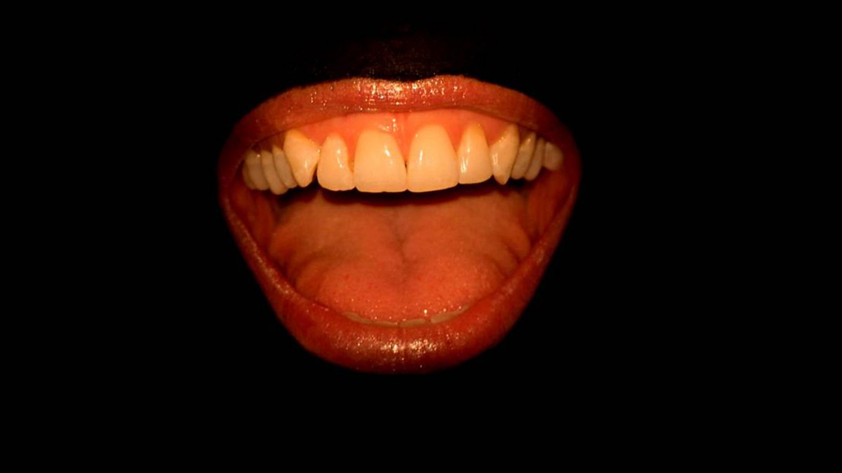 A disembodied mouth hovers 8 feet above the stage and appears to oscillate wildly around the pitch-black auditorium.