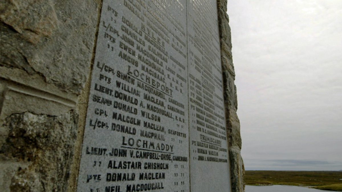 Prògram goirid air aithris le Julie Fowlis a tha a' rannsachadh an droch bhuaidh a bh'aig a' Chiad Chogadh air beatha nan Gàidheal. Leis an Dtr D.U. Stiùbhart agus an eachdraiche Murchadh Peutan. San t-samhain 1918, bhuannaich Breatainn agus a companaich a' Chiad Chogadh. Ged a bha iad air an gnothach a dhèanamh air a' Ghearmailt, chosg e dhaibh.