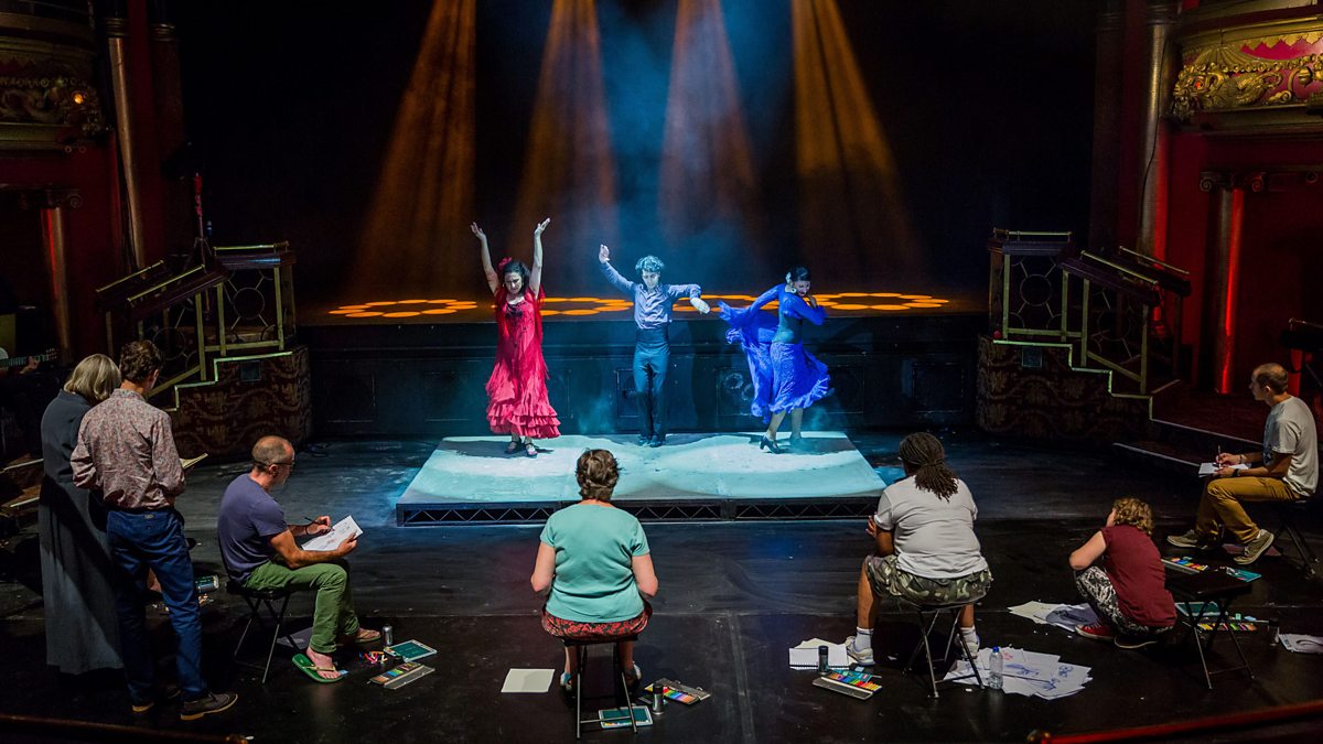 Also, the artists take on their final challenge of the week - which proves emotional for some - painting a powerful and passionate flamenco dance in coloured chalk and pastel. And we learn which artist's painting is summed up with the phrase 'I did earlier snort with laughter looking at it'.