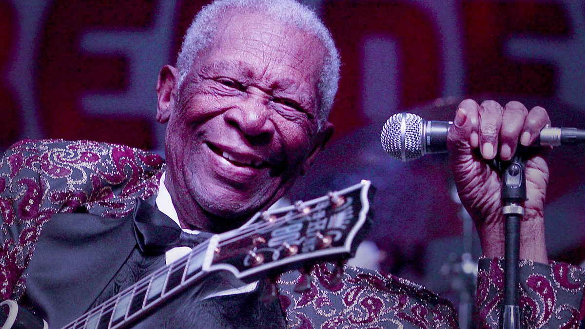 B.B. King whose blues guitar took him from the cotton fields of Mississippi to international stardom.