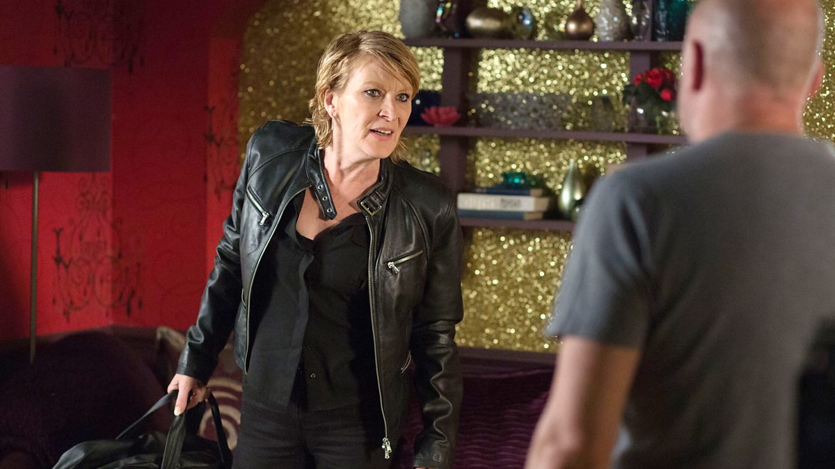 Having clocked this exchange, Dean suggests to Roxy that they come clean – it was her bra that was found. Roxy stands firm, she likes the pair of them being a secret and purports that Shirley and Buster getting custody of Jade would be highly unlikely anyway. Shirley nervously tries to persuade the Social Worker of hers and Buster’s suitability to take on Jade. Buster puts his cards on the table and admits his criminal record and Dean’s charges. When the Social Worker informs the pair that single people can adopt, Shirley is given food for thought. Alone again with Shirley, a positive Buster suggests he can get a job and find them a house, but Shirley retorts that she can do it on her own.