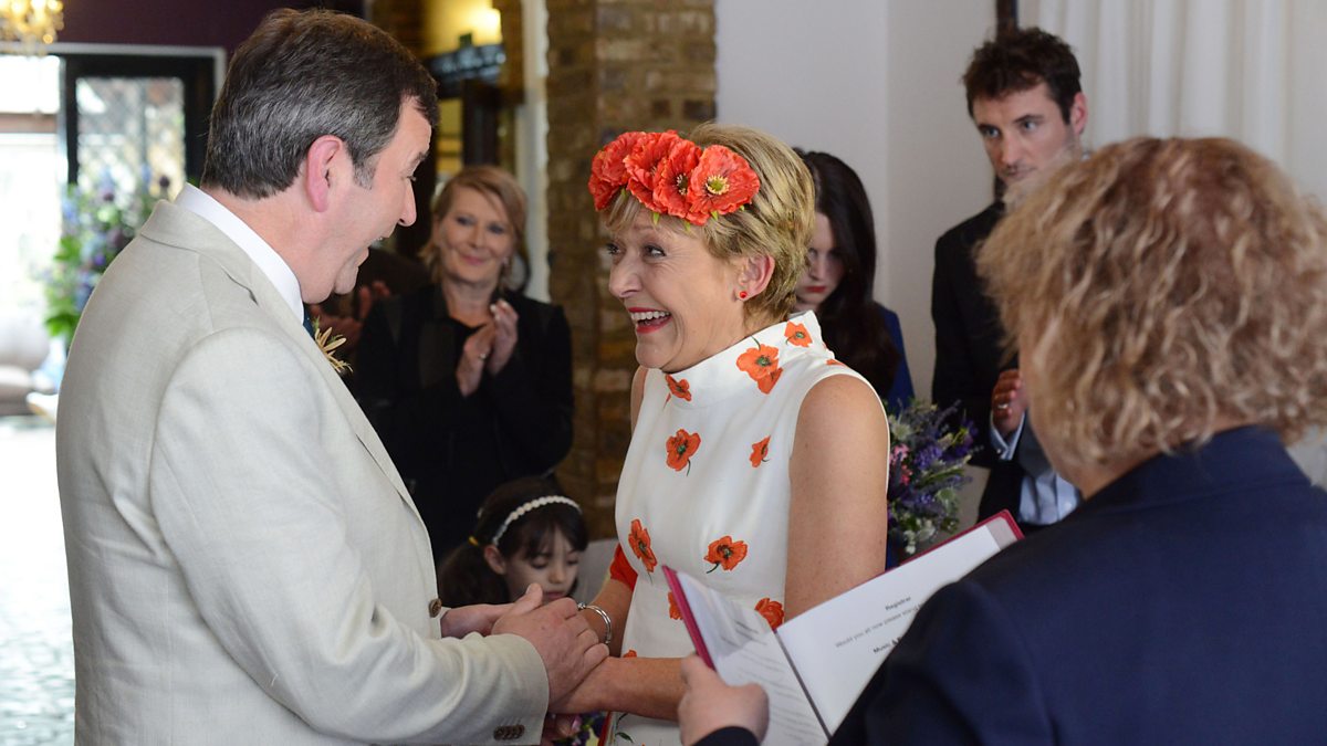At the venue, Ollie confides in Martin, Jean’s worried about Stacey; Martin admits Stacey seems hyper. Outside, a nervous Jean promises Stacey she hasn’t forgotten her father – he was a good man who lost his way. Stacey’s bemused but Shirley interrupts to hurry Jean along. Stacey’s certain Jean’s hiding something but Shirley demands she leave it. Jean walks down the aisle to a waiting Ollie; The Wendys sob as Jean and Ollie exchange vows.