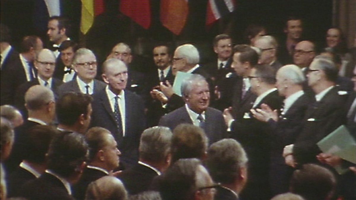 First shown on BBC One on 24 January 1972. Two days ago, Britain was set on a new course when we signed the Treaty of Accession to the EEC. In Brussels, Panorama talks exclusively to the prime minister at this moment of personal triumph and asks him how he wants to shape and influence the Europe Britain is in the process of joining.